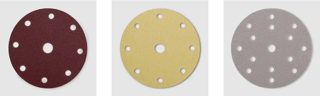 | NHÁM GIẤY DẠNG DĨA ĐẾ LÔNG dùng cho chà nhám gỗ. Có sẵn nhiều loại với nhiều dạng lỗ hút bụi khác nhau. | NHÁM GIẤY DẠNG DĨA ĐẾ LÔNG dùng cho chà nhám trên sơn. Có sẵn nhiều loại với nhiều dạng lỗ hút bụi khác nhau. | NHÁM PHIM DẠNG DĨA ĐẾ LÔNG dùng với máy chà nhám để xử lý lớp sơn lót hoặc khác. Có sẵn nhiều loại với nhiều dạng lỗ hút bụi khác nhau |